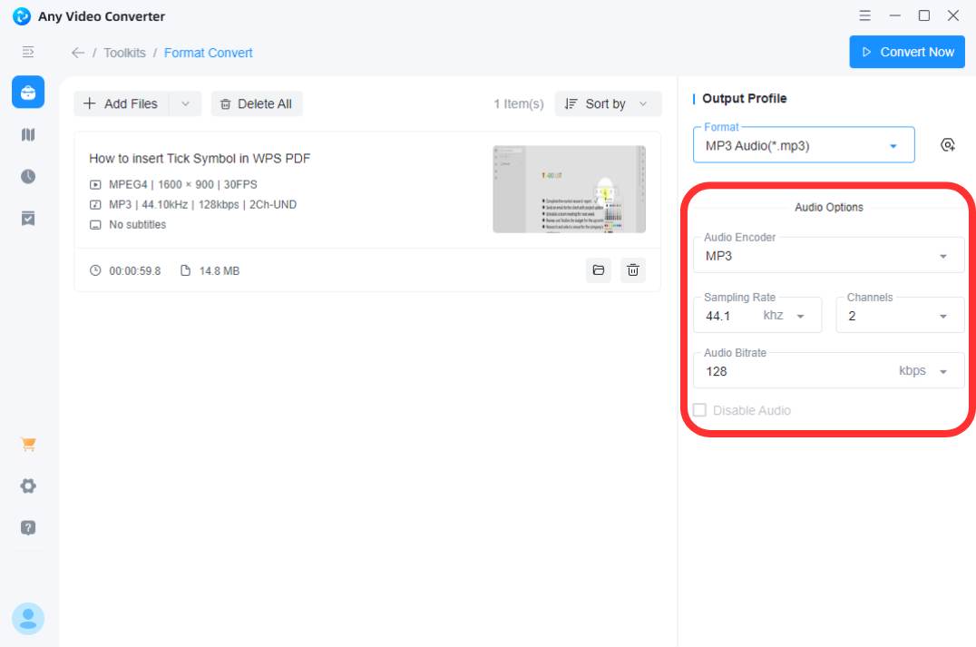 Step 6: After your output audio selection, you can go through the additional setting to customize your conversion.