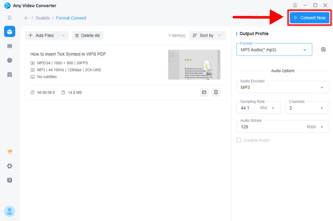Step 7: Once everything is set, click the “Convert Now!” button. AVC will begin converting your M4A file to MP3.