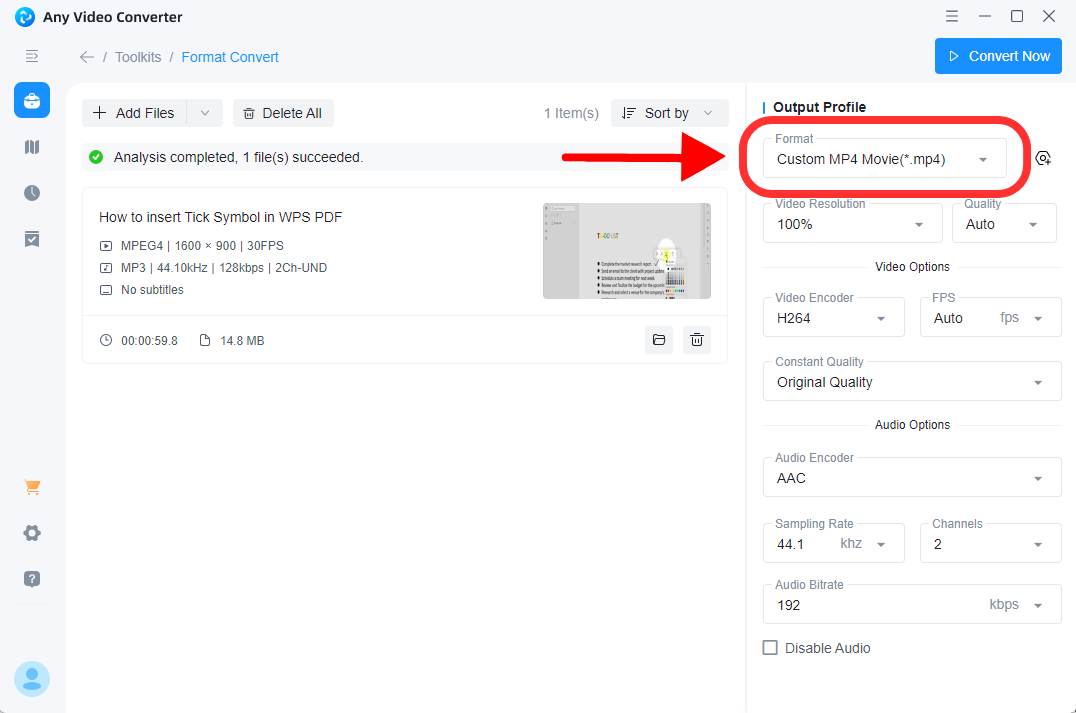 Step 2: Once the download is finished, open the Any Video Converter app on your system and click on the "Format Convert" button to view the conversion options available.