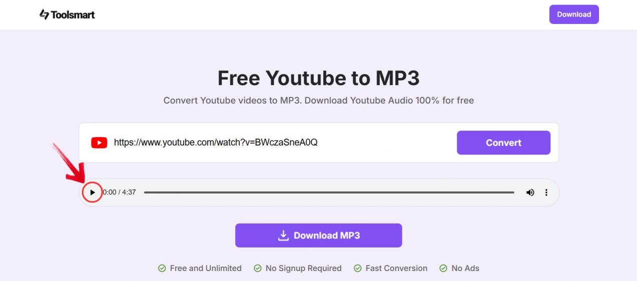 Being one of the most straightforward tools for downloading YouTube videos in audio format, Toolsmart keeps the process simple. Here’s how you can do it: