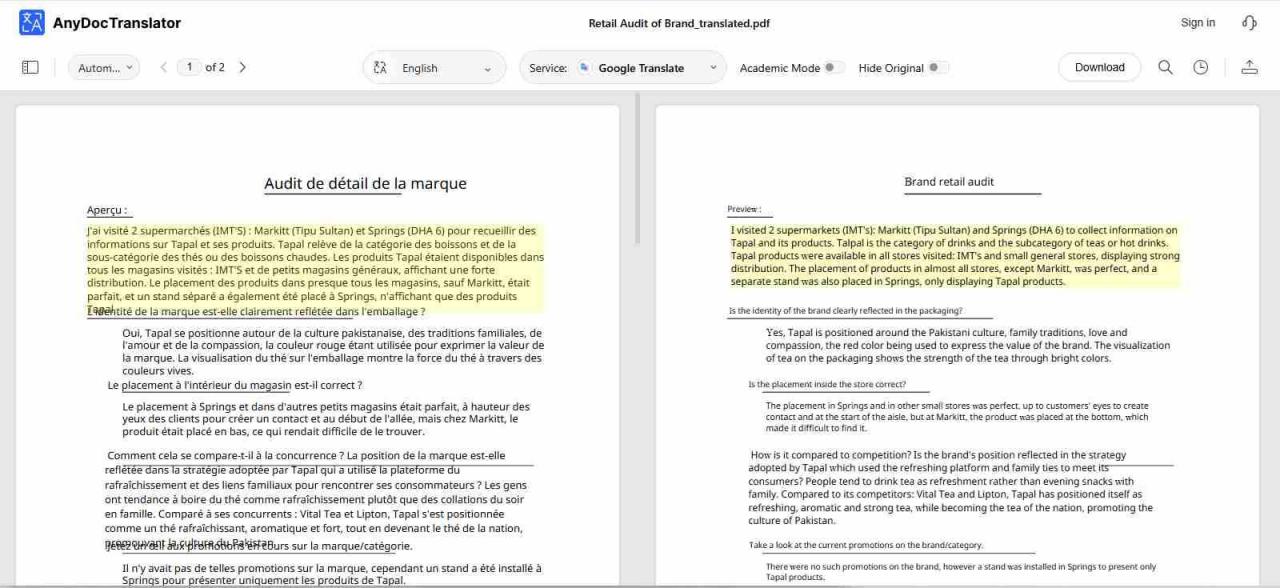 AnyDoc Translator fully supports over 30 file formats (including image-based PDFs), translates in 100+ languages (even RTL scripts). It not only supports the mutual translation of commonly used languages, but also supports lesser-known languages. For instance, it supports translations such as English to Tagalog and English to Tamil. AnyDoc Translator also shows you a side-by-side preview so you can see exactly what’s been translated and how. You can even hover over the text to confirm meanings, pretty handy when you're working with unfamiliar terms.