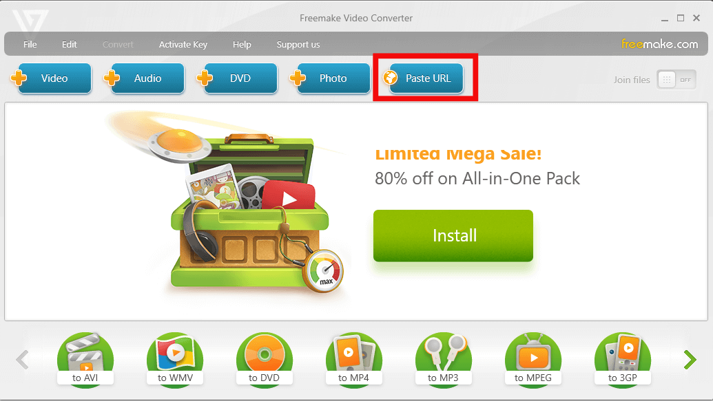 Étape 3 : Ouvrez ensuite Freemake Video Downloader et cliquez sur « Coller l'URL ». L'outil détectera automatiquement la vidéo.